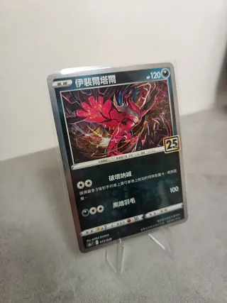 Carta Pokémon伊裴爾塔爾 con 120 HP. - Attacco: 破壞呐喊 - Attacco: 黑暗羽毛 - Illustratore: AKIRA EGAWA - Numero carta: 013/028