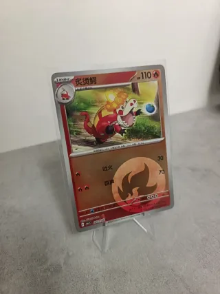 Carta Pokémon 炙烫鳄 con 110 HP. Un Pokémon de tipo fuego. - Carta de 1ª Evoluzione. - Ataques: 吐火 (30) y 巨声 (70). - Código: G0401/08.