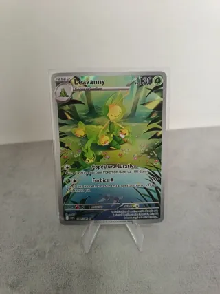 Carta Pokemon Leavanny, Fase 2, con l'attacco Copertura Curativa e Forbice X. - Attacco Copertura Curativa: Cura 100 danni ai tuoi Pokémon Base. - Attacco Forbice X: 90 danni base, con 40 danni aggiuntivi se esce testa al lancio della moneta.
