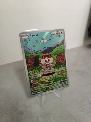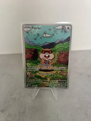 Carta Pokémon di Patrat, edizione Base. - Patrat con 60 PS. - Illustrazione a tema natura. - Abilità: Rifornimento. - Attacco: Rosicchiamento.