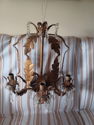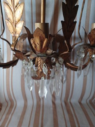 Applique 3 luci cablata in arte fiorentina in ferro battuto dorato. Perfetta ancora cartellinata. Misure in foto.