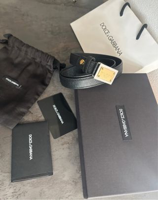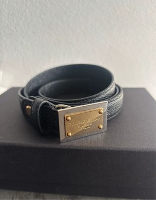 Cintura originale donna Dolce & Gabbana pelle nera fibbia oro e argento, Lunghezza 85 cm altezza 2 cm, nessun buco aggiunto, con dustbag scatola e certificato acquistata allo spaccio di Dolce&Gabbana a Legnano, non ho più la fattura. Cintura tenuta bene ma la fibbia presenta qualche piccolo graffio di utilizzo non molto evidente come si può vedere in foto . Codice autenticità inciso numero: BE1364B5373