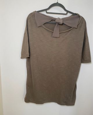 Maglione color fango con un dettaglio unico sul retro. Il girocollo ampio lo rende comodo da indossare. - Particolare fiocco sul retro - Girocollo ampio - Tessuto morbido