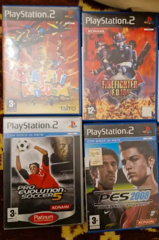 Vendo lotto di giochi 8 per ps2, di cui alcuni con custodia e libretto e alcuni senza - Pes 2008 con libretto ottime condizioni - Pes 2005 con libretto ottime condizioni - Graffitti kingdom con libretto ottime condizioni - Fire fighter 18 fd con libretto ottime condizioni - I cavalieri dello zodiaco senza libretto disco presenta graffi buone condizioni - Il signore dei anelli senza copertina e libretto disco buone condizioni - Devil may cry 3 senza custodia e libretto disco presenta graffi ma buone condizioni - Dragonball budokai tenkaichi senza custodia e libretto disco con graffi