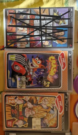 Vendo lotto di 8 giochi per PSP. I Giochi sono i seguenti - Grand Theft Auto VENDUTO NON PIÙ DISPONIBILE - Crash Bandicoot: Crash Tag Team Racing completo di libretto - Dragon Ball Z: Shin Budokai 2 completo di libretto - Need for Speed: Carbon completo di libretto - Naruto Shippuden: Legends: Akatsuki Rising completo di libretto - Need For Speed Most Wanted 5-1-0 con custodia sostitutiva senza copertina e libretto -Prince of Persia: Rival Swords senza custodia e libretto con porta umd tartarughe ninja - Ben 10 Ultimate Alien Cosmic Destruction senza custodia e libretto con porta umd tartarughe ninja -Invizimals