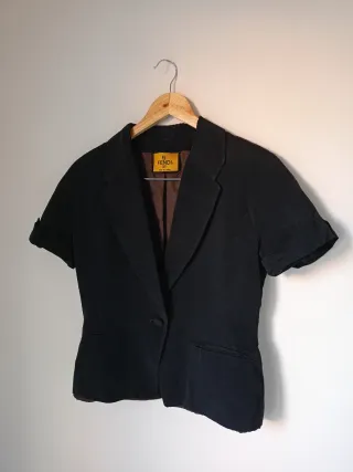 Elegante giacca Fendi in cotone e viscosa. - Maniche corte. - Chiusura con un bottone. - Fodera interna marrone. - Dettagli sartoriali.