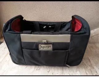 Borsone trolley Superga di colore nero, ideale per i viaggi. - Tessuto resistente. - Logo Superga applicato frontalmente. - Interno foderato in tessuto rosso. - Manici superiori e tracolla. - Tasche esterne e scomparti interni.
