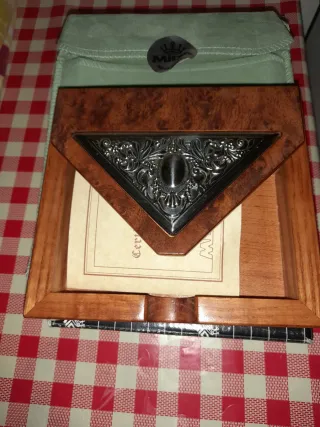 Elegante portabiglietti da visita realizzato in legno con finiture in argento 925%.Mida. - Design raffinato, con certificato di garanzia. - Materiali pregiati per un accessorio distintivo. Nella sua confezione originale molto bello anche per regalare. Spedizione veloce. ACCETTO OFFERTE.