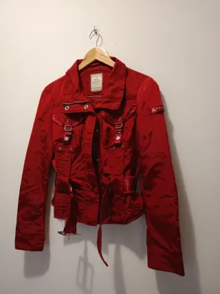 Elegante giubbotto Peuterey da donna, modello cropped. - Taglia M - Colore rosso vivace - Design moderno e versatile - Dettagli con fibbie e cintura