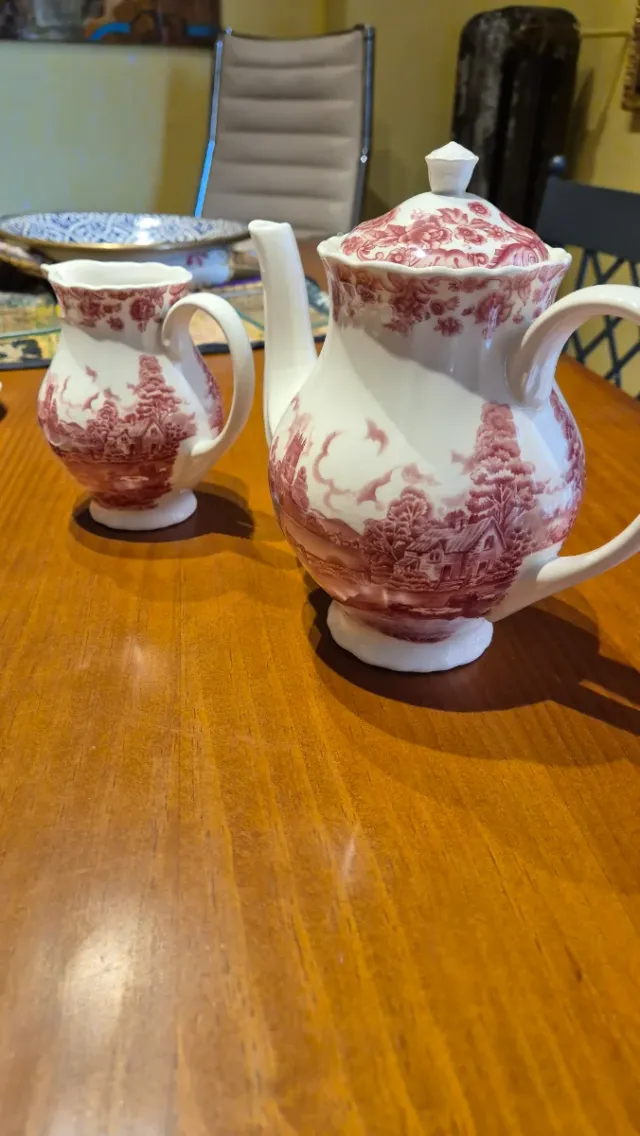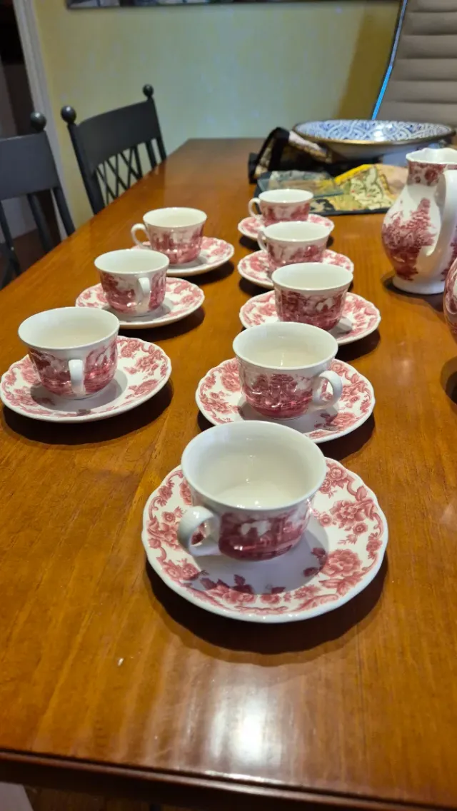Set da tè in porcellana rosso e bianco