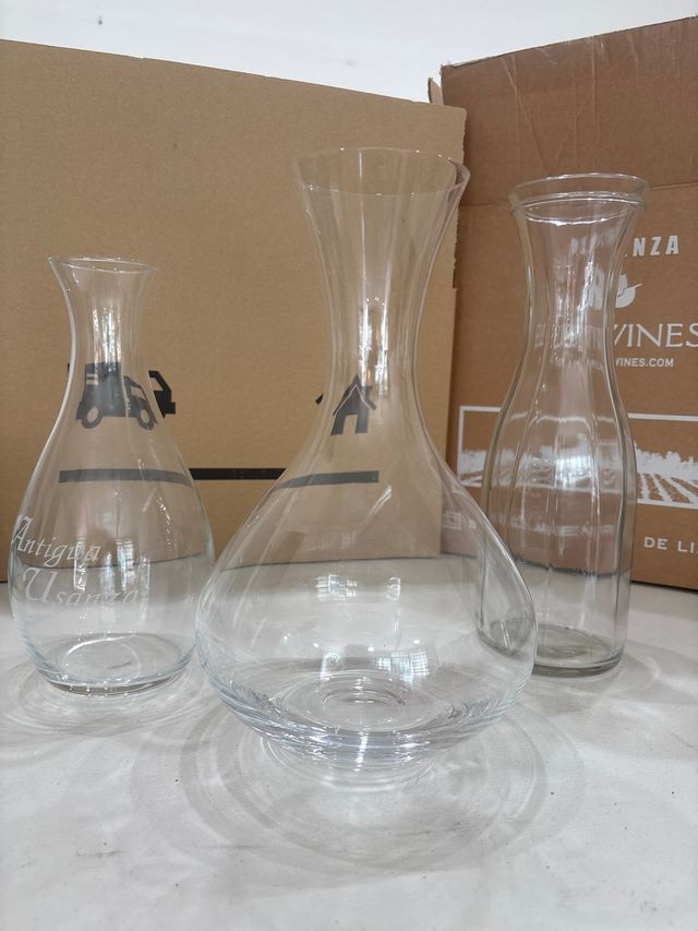 3 caraffe in vetro trasparente