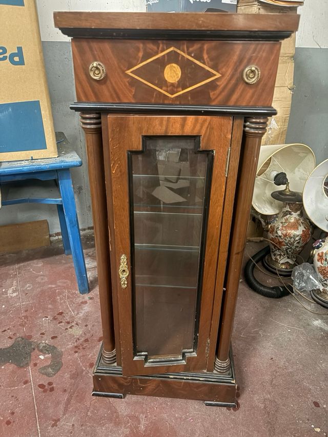 Vitrina de pie clásica de madera y cristal