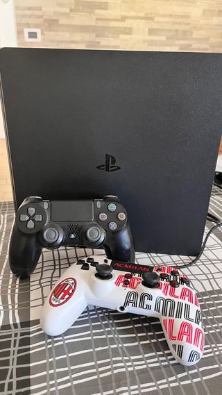 Console PlayStation 4 in elegante finitura nera. - Include due controller: uno nero standard e uno personalizzato AC Milan. - Presenti 5 diversi giochi per un divertimento immediato.