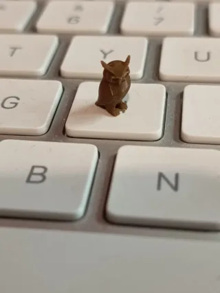 Piccolo gufo decorativo in plastica marrone. - Dettagli curati. - Ideale per collezionisti o come soprammobile. - Altezza 1 cm