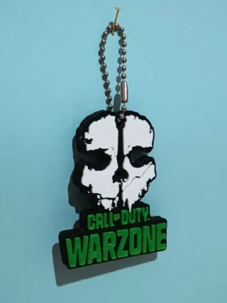 Portachiavi a tema Call of Duty Warzone. - Design con teschio bianco e nero. - Logo Call of Duty Warzone in verde.
