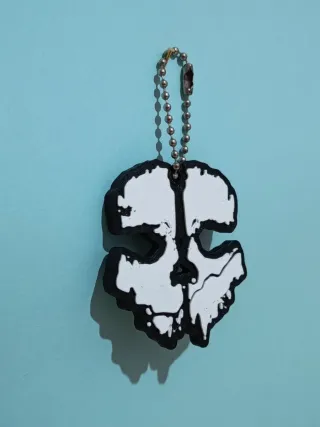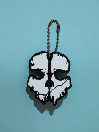 Portachiavi a tema Call of Duty Warzone. - Design a forma di teschio stilizzato. - Colore bianco e nero. - Completo di catenella metallica.