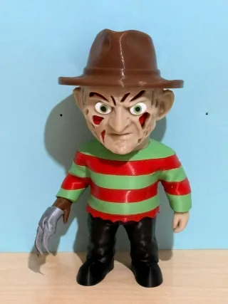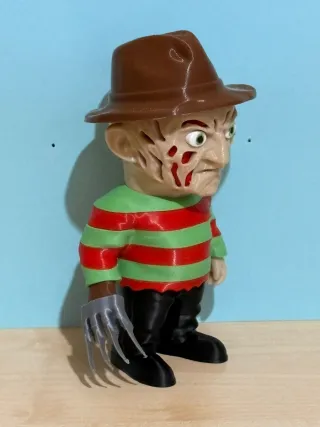 Action figure di Freddy Krueger, iconico personaggio del film horror Nightmare. - Indossa la sua classica maglia a righe verdi e rosse. - Cappello marrone. - Guanto con artigli metallici.