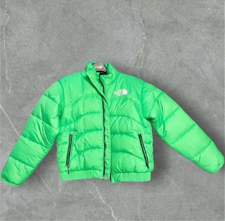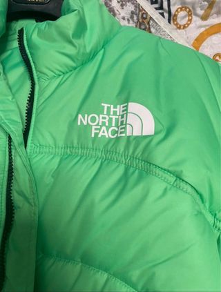 Piumino The North Face di colore verde brillante, perfetto per le giornate più fredde. Presenta un design trapuntato che offre calore e comfort. - Zip frontale. - Tasche laterali con zip. - Collo alto.