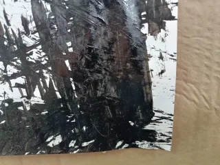 Opera d'arte astratta con predominanza di nero. - Tecnica mista su carta. - Texture materica.