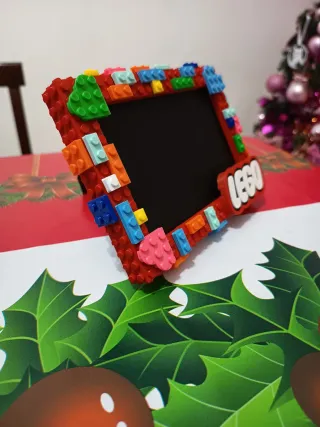 Bellissima cornice portafoto in stile LEGO, perfetta per foto da 10x15 cm. Realizzata con mattoncini colorati che ricordano i famosi giochi di costruzione. - Design ispirato ai LEGO. - Adatta per foto 10x15 cm. - Decorata con mattoncini colorati e cuori.