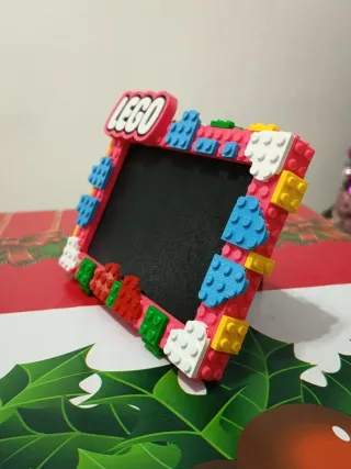 Portafoto decorativo con design ispirato ai mattoncini LEGO. - Dimensioni interne per foto: 10x15 cm. - Cornice esterna decorata con elementi colorati. - Logo LEGO applicato sulla parte superiore.