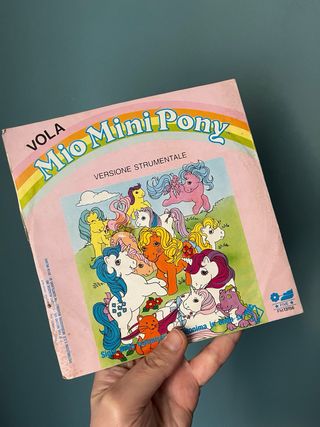 Disco in vinile 45 giri vintage Vola Mio Mini Pony cantato da Cristina D'Avena. Un classico per i più piccoli. - Copertina con illustrazione colorata dei pony. - Etichetta discografica Five Record. Anno 1987 Disco in ottime condizioni, custodia un po’ rovinata dal tempo
