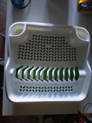 Scolapiatti pratico e funzionale, perfetto per organizzare le stoviglie. - Design moderno con inserti verdi. - Realizzato in resistente plastica. Con vassoio salvagoccia staccabile
