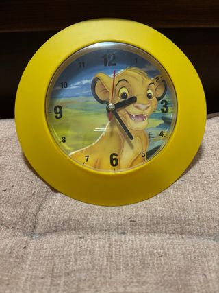 Orologio da parete con un'immagine di Simba del Re Leone. - Cornice gialla. - Quadrante con numeri. - Immagine di Simba. - Perfettamente funzionante