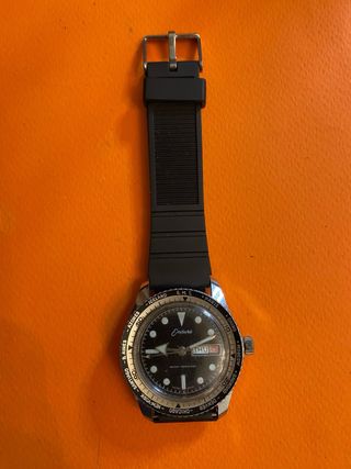 Orologio Endura con ghiera girevole GMT World Timer. - Ghiera con nomi di città e fusi orari. - Indicazione giorno e data. - Movimento Swiss Made. - Cinturino in gomma nero. -NON FUNZIONA-corona di carica da sistemare