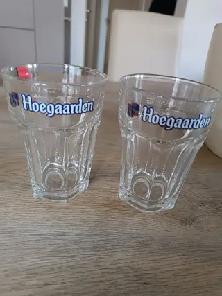Due bicchieri da birra marchio Hoegaarden, molto robusti, capacità 25cl. Nuovi, mai usati