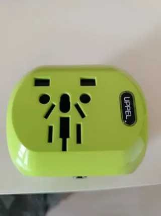 Adattatore per prese europee verso presa USA/Massico (tipo A) e Australia (tipo I). Le palette ruotano per passare dalla posizione verticale per USA a quella obliqua per Australia Mai usata