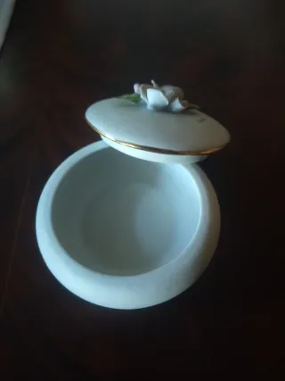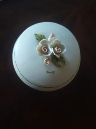 Elegante scatola in ceramica, perfetta per conservare piccoli oggetti. - Decorazione floreale con rose. - Finitura liscia e delicata con bordo sul coperchio in oro zecchino. - Marchio Barotti inciso.