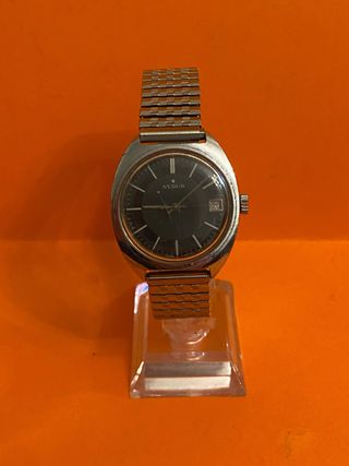 Orologio da polso vintage marca Sydus con quadrante scuro e datario. - Cinturino in metallo. - Cassa in metallo. - Datario visibile.Orologio funzionante e tiene il tempo! Sono presenti segni di usura del tempo!