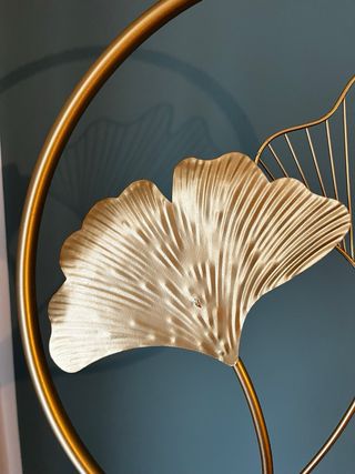 Elegante decorazione 3d da parete a forma di foglie di Gingko. - Design circolare. - Finitura dorata. - Realizzata in metallo. Diametro circa 43 cm No difetti, come da foto Spedizione accurata 📦