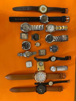 Lotto composto da diversi orologi vintage, adatti sia per uomo che per donna. - Orologi con cinturini in pelle e metallo. - Quadranti di varie forme e colori. - Stili diversi, da classici a più moderni. -Si vendono come NON FUNZIONANTI per pezzi di ricambio o eipristino!