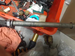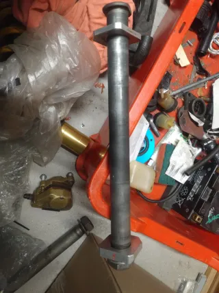 Asse ruota posteriore per Aprilia RS 125. - Materiale metallico. - Include dado e rondella.