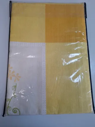 Elegante tovaglia in lino con un motivo a quadri nei toni del giallo e del bianco. Presenta una delicata decorazione floreale su un lato. - Dimensioni: 140x240 cm - Motivo a quadri - Decorazione floreale