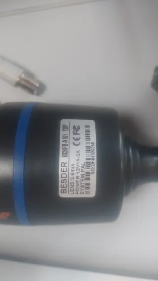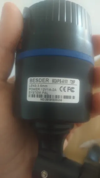 Telecamera di sicurezza Besder con risoluzione 720p. - Lente da 3.6mm. - Alimentazione: 12V 1A-2A. - Sistema PAL. - Certificazioni CE e FC. - Numero di serie: 20181020258.
