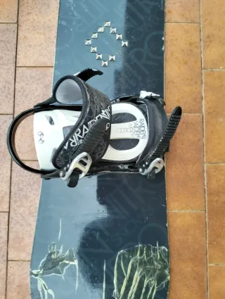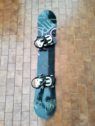 da snowboard Nitro, modello Lectra 42. - Design nero con dettagli grafici. - Attacchi inclusi. Sfogliatura parte superiore. Buoni per imparare. Per via delle dimensioni selezionare Bartolini e trasporto a casa