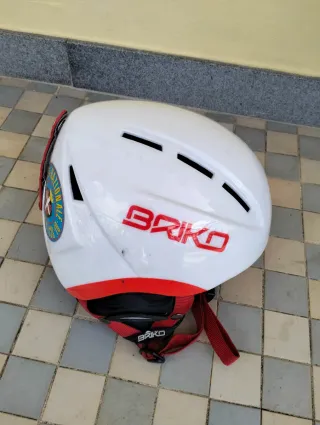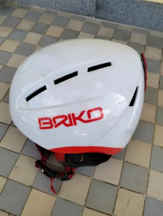 Casco da sci BRIKO di colore bianco, con dettagli rossi. - Logo BRIKO sul davanti. - Sistema di regolazione. - Cinturino regolabile. Alcuni s gbi come da foto
