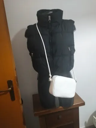 Set composto da un gilet imbottito nero e una borsetta bianca. - Gilet con collo alto e chiusura a zip. - Borsetta a tracolla con chiusura a zip.