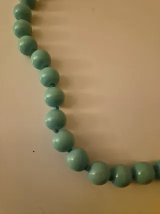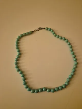 Collana con perle di colore verde acqua. - Chiusura a moschettone. - Perle tondeggianti.