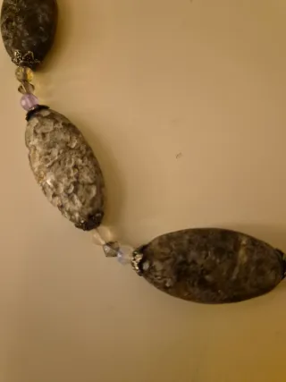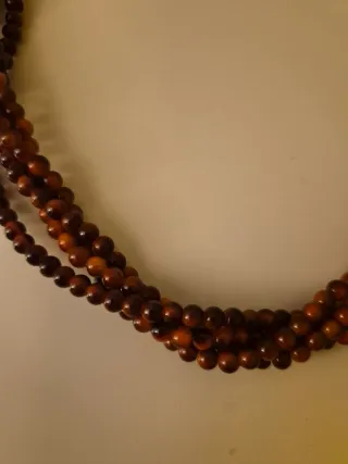 Collana composta da tre fili di perline. - Perline di colore marrone e multicolore. - Chiusura a moschettone.