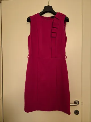Elegante vestito da ufficio. - Tessuto testurizzato. - Scollo rotondo. - Senza maniche. - Lunghezza al ginocchio.