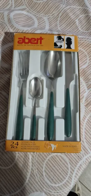 set di posate Abert. Questo set include 24 pezzi per servire comodamente. - Design moderno con manici verdi. - Realizzate in acciaio inossidabile di alta qualità. - Made in Italy.