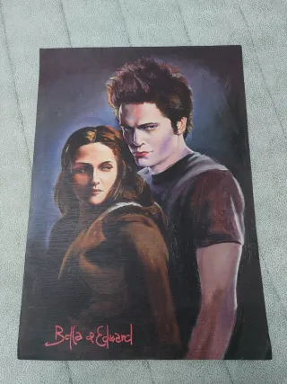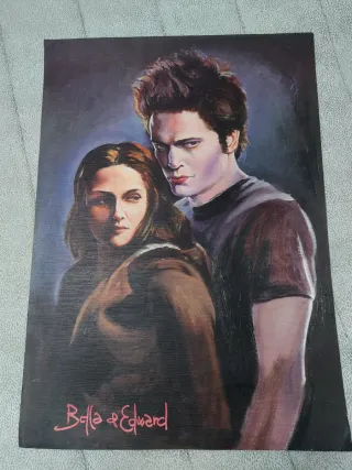 Poster raffigurante Bella e Edward. - Stampa su tela. - Firma Bella e Edward in basso a sinistra.