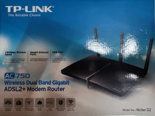Router modem wireless TP-LINK AC750 Dual Band Gigabit ADSL2+ Archer D2. - Velocità wireless fino a 750 Mbps (simultanea 5GHz 433Mbps e 2.4GHz 300Mbps). - Porte Ethernet Gigabit (10/100/1000Mbps). - Porta USB per condivisione di storage e stampanti. - Protezione da fulmini 6000V. - Supporto TP-LINK Tether App. PREZZO TRATTABILE.