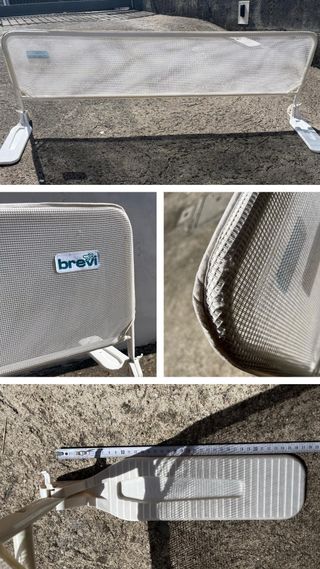 Sbarra letto anticaduta Brevi, utile per la sicurezza dei più piccoli. - Tessuto a rete traspirante. - Struttura in metallo. - Logo Brevi visibile. Misura 150 cm circa
