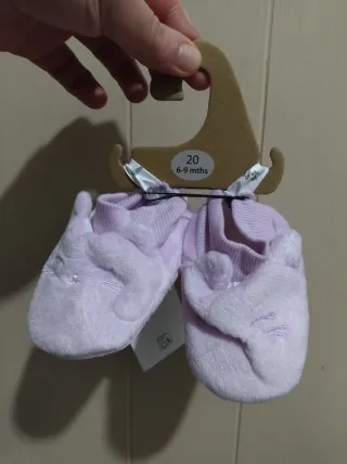 Dolci scarpine per neonata Pepco, perfette per i primi mesi. - Taglia 20 (6-9 mesi). - Morbido tessuto color lilla. - Design con simpatico musetto e orecchie da gatto.