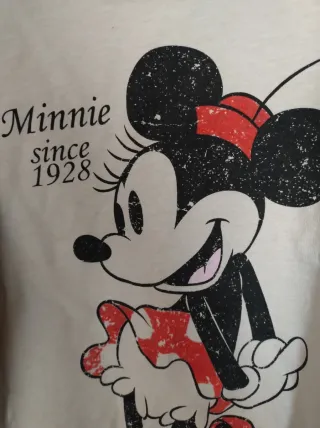 Felpa da donna con stampa di Minnie. - Stampa di Minnie con dettagli disegno in rilievo morbidi - disegno stampa vintage - taglia S Macchiolina sulla manica come da foto, per il resto nessun difetto